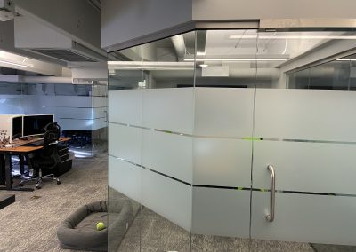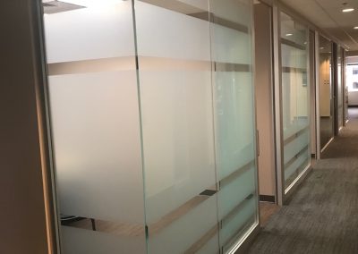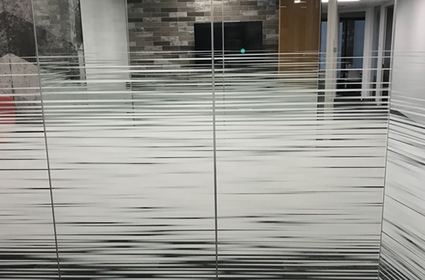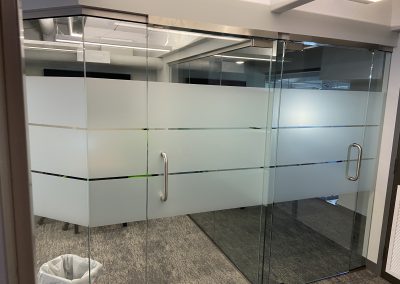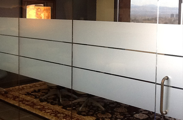 Privacy Bands with window film are a great way to get some privacy in a room without fully closing off vision into and out of a space. Distraction Bands come in many patterns and just help mark glass to give it a design aspect and keep people from walking into windows adding to the safety. Both Privacy Bands and Distraction Bands can incorporate logos to promote your brand.